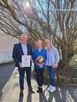 Ortsbürgermeister Matthias Hetger gratulierte persönlich und hob in seiner Ansprache hervor, dass eine Einrichtung wie der Kindergarten nur dann reibungslos funktionieren kann, wenn im Hintergrund alles „glänzt“. Als Zeichen des Dankes überreichte er Lilija Schmidt eine Ehrenurkunde der Ortsgemeinde sowie einen farbenfrohen Blumenstrauß und wünschte ihr für die Zukunft weiterhin alles Gute.