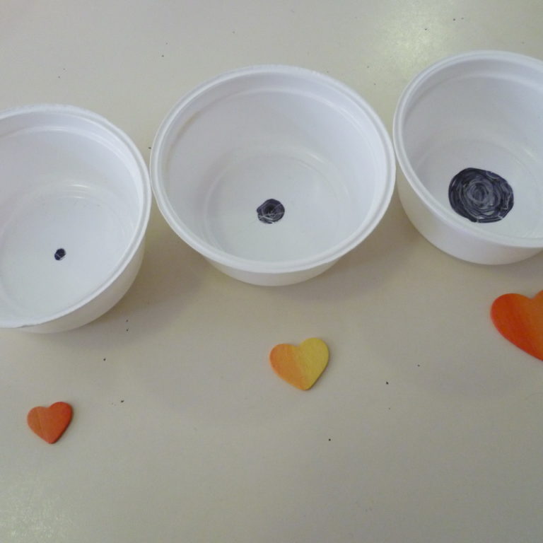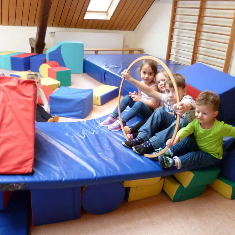 Im blauen Raum beschäftigen sich die Kinder gerne mit verschiedenen Aktionstabletts. Sie müssen z.B. Formen der passenden Dose zuordnen oder Herzen nach der Größe einsortieren. Im Mittagskreis wurden Bücher und Lieder, passend zum Herbst angeboten.